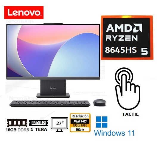 - Pantalla táctil de 27″ IPS FHD (1920 x 1080) antirreflejo