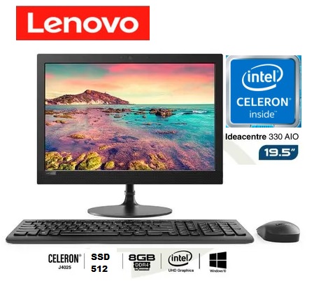 All in One Lenovo IdeaCentre AIO 330 19.5″ Intel Celeron 8GB RAM SOLIDO 512 PRODUCTO REMANUFACTURADA producto llega en caja marron