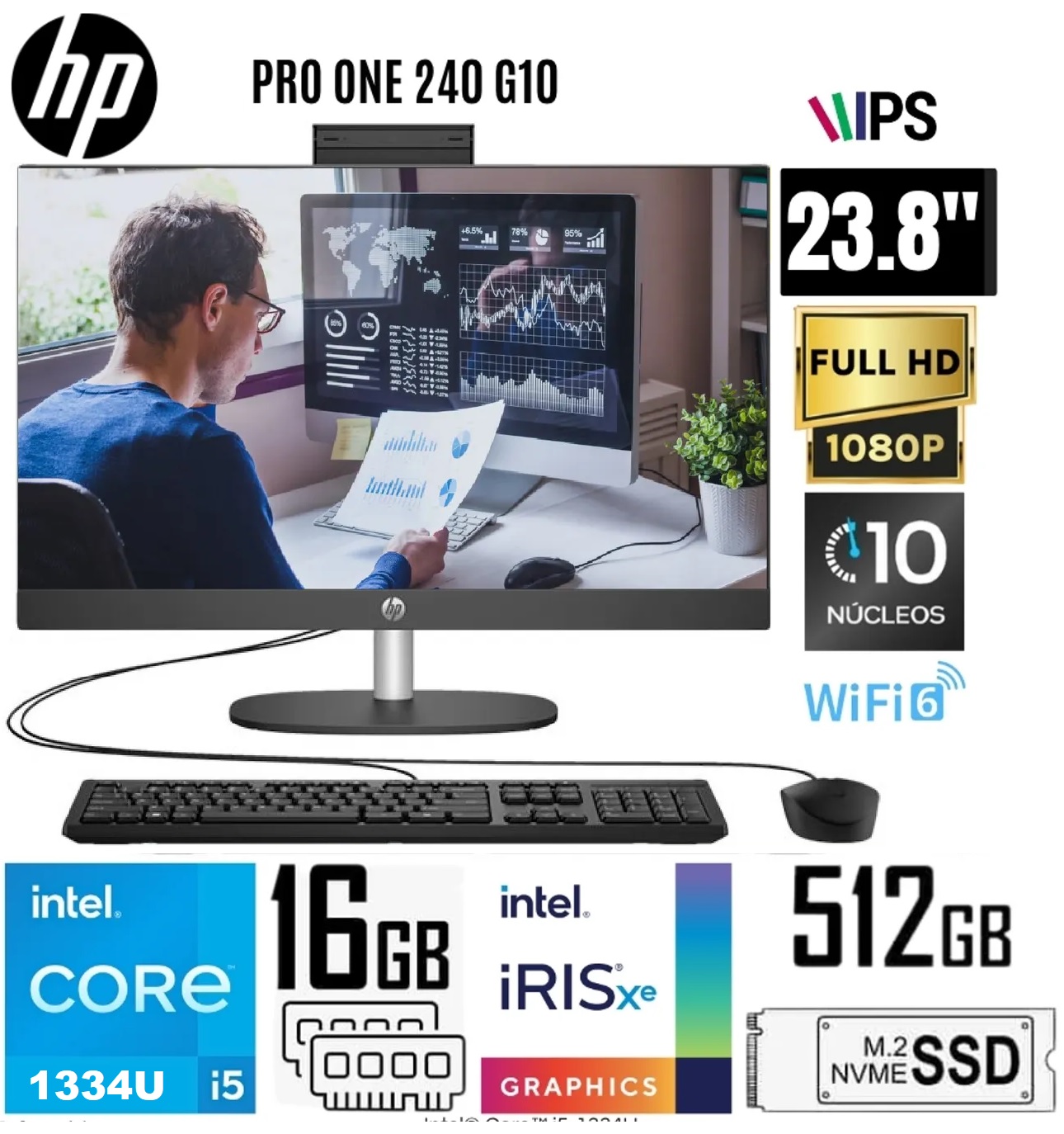 23.8″, FHD (1920 x 1080) 16:9, 60Hz, 250 nits, Anti-glare